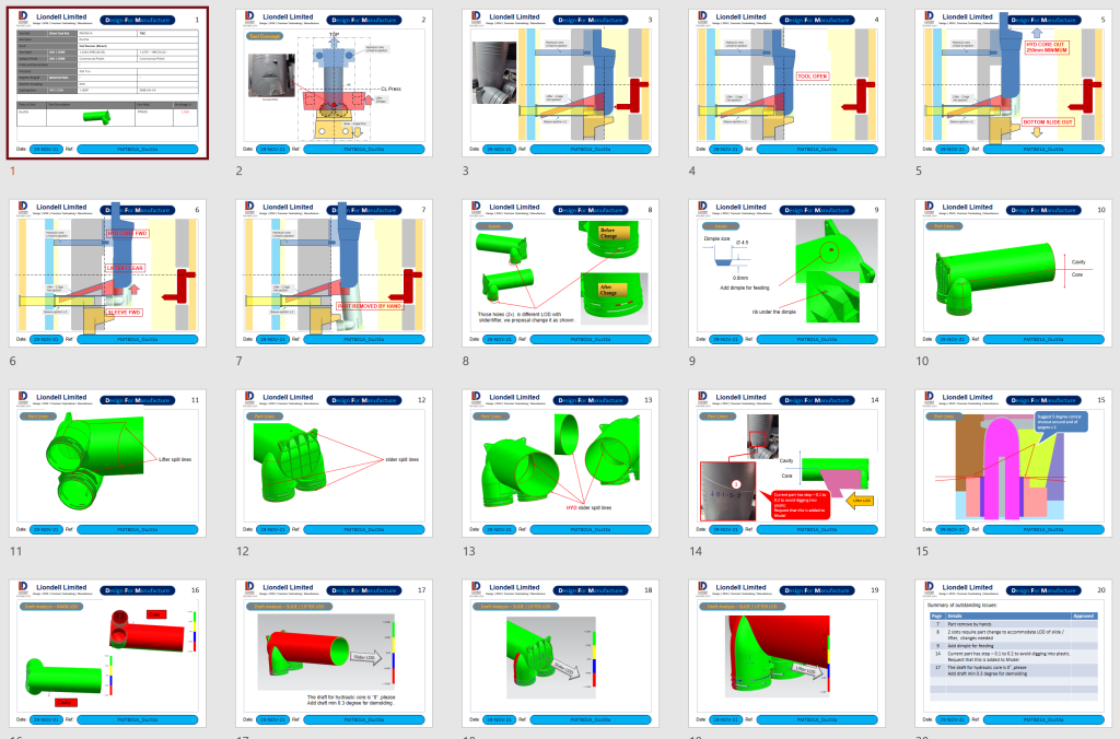 The Design for Manufacture (DFM) process starts when we receive parts to quote for tooling. The process is related to DFMEA (Design failure mode and effect analysis) or PFMEA (Process failure mode and effect analysis). However, it is focused on tooling and moulding processes.